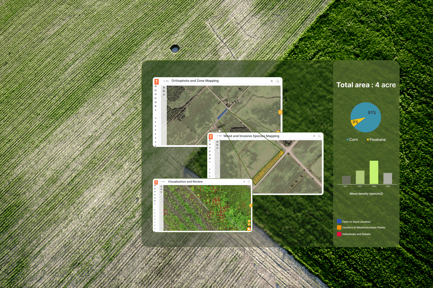 Our platform uses powerful AI and computer vision to analyze images/videos in minutes. It accurately detects weed and invasive species locations—learning over time to improve precision